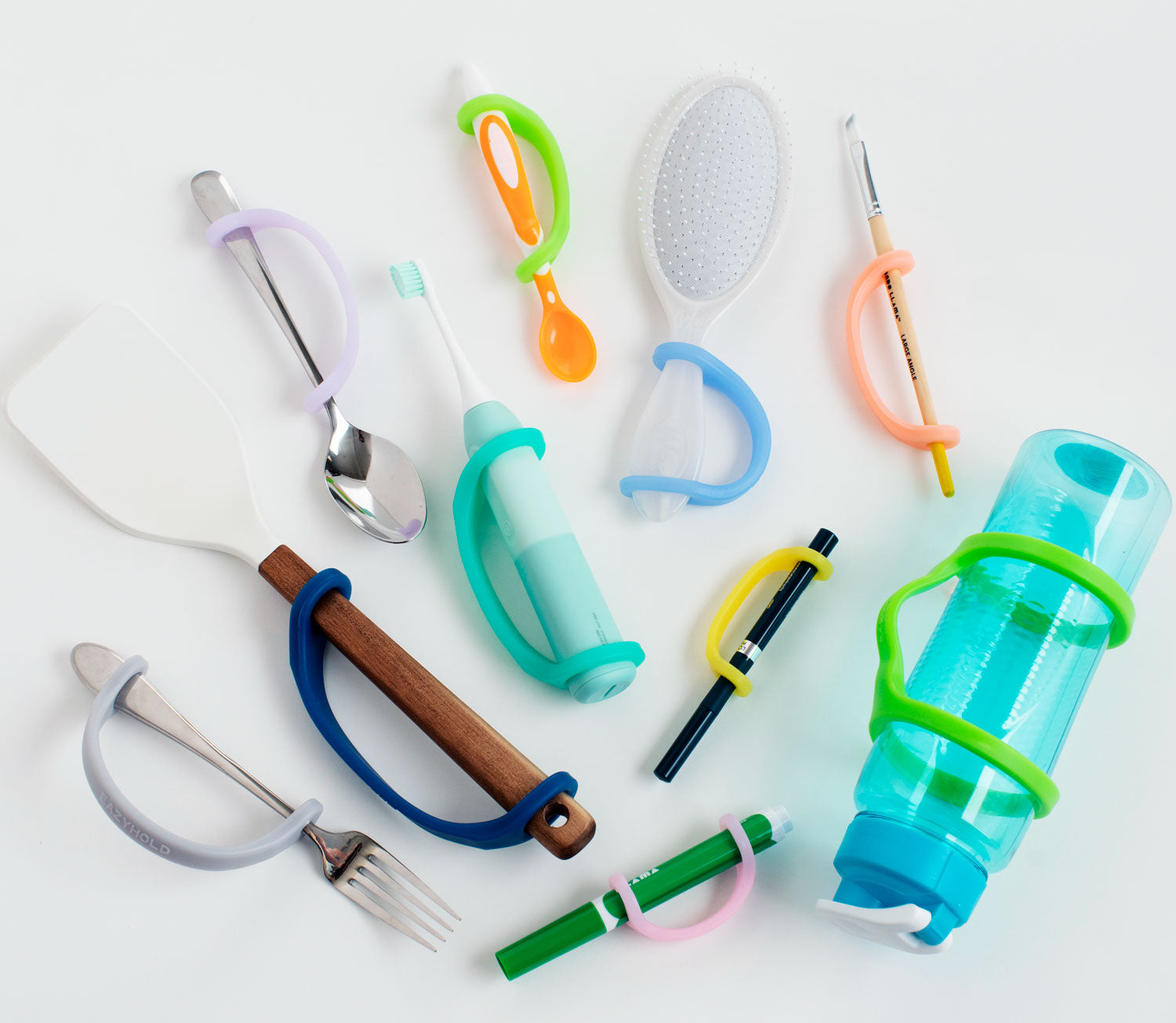 A family-owned and operated business, EaZyHold was born when arthritis began to prevent the Mellin sisters from enjoying the work and hobbies they loved. Finding no grip aids available on the market, they invented an adaptable, soft, comfortable, hygienic, 100% silicone grip assist. This revolutionary product allows both adults and children, many for the first time, to easily hold utensils, cups, toothbrushes, styluses, kitchen and garden equipment, musical instruments, and even toys comfortably, with the dignity and independence that everyone deserves. Remarkably, EaZyHold is also the first cuff ever made in infant sizes for the tiniest of hands.