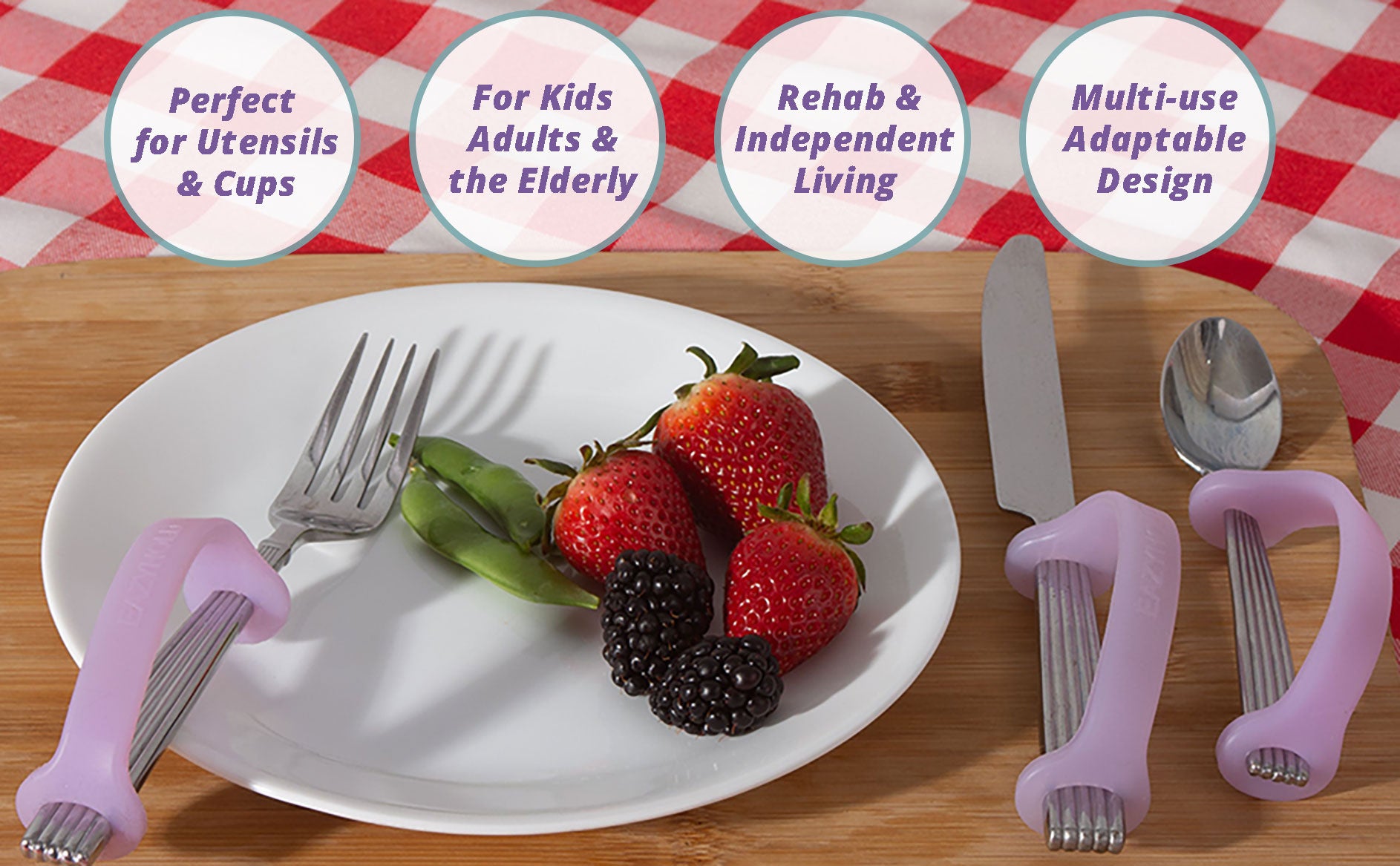 “I work with people of all ages and sizes with self-feeding deficits. This product has made such a difference as it gives input to the hand and helps my patients to grasp the eating and drinking utensils by themselves without dropping”